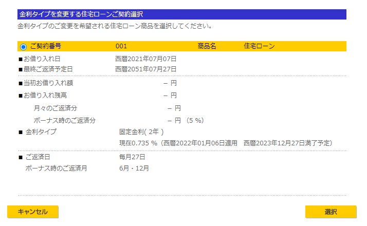 以上で金利タイプ変更手続き完了。