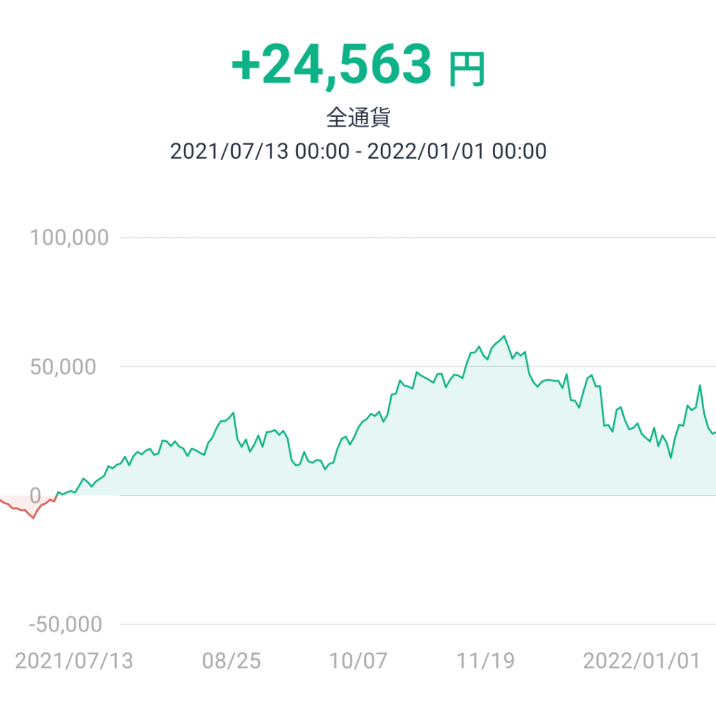 グラフでもわかるとおり、11月にはビットコインも700万円の最高値を記録して、他の仮想通貨も大きく値を上げて、一時は+50,000円にもなっていた。