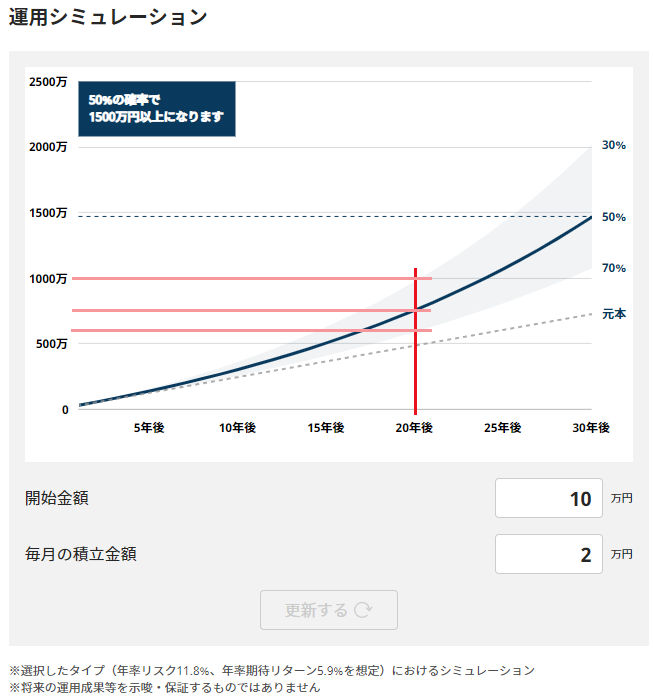 設定している運用タイプその他の条件で損益も変わってくることになる。