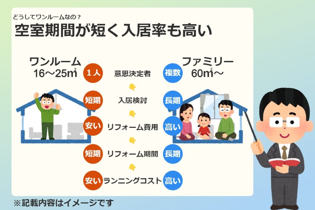 一方、独身者向けの物件は、契約者1人が決めればすぐに契約に至るので、空室になったとしても、入居するまでの期間が短くなる。